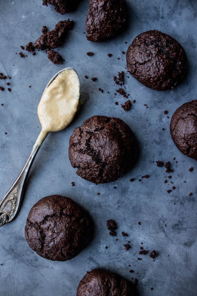 Niedawno spróbowałam przepysznych chocolate and tahini bites w jednej z lokalnych piekarni i w związku z tym, że uwielbiam zarówno czekoladę, jak i tahini, postanowiłam trochę poeksperymentować i stworzyć coś na ich wzór. Udało mi się upiec pyszne, bardzo mocno czekoladowe ciastka, wilgotne w środku, z wyczuwalną nutą tahini. Ciastka są dość „bogate” w smaku dzięki sporej zawartości kakao i specyficznemu smakowi tahini.