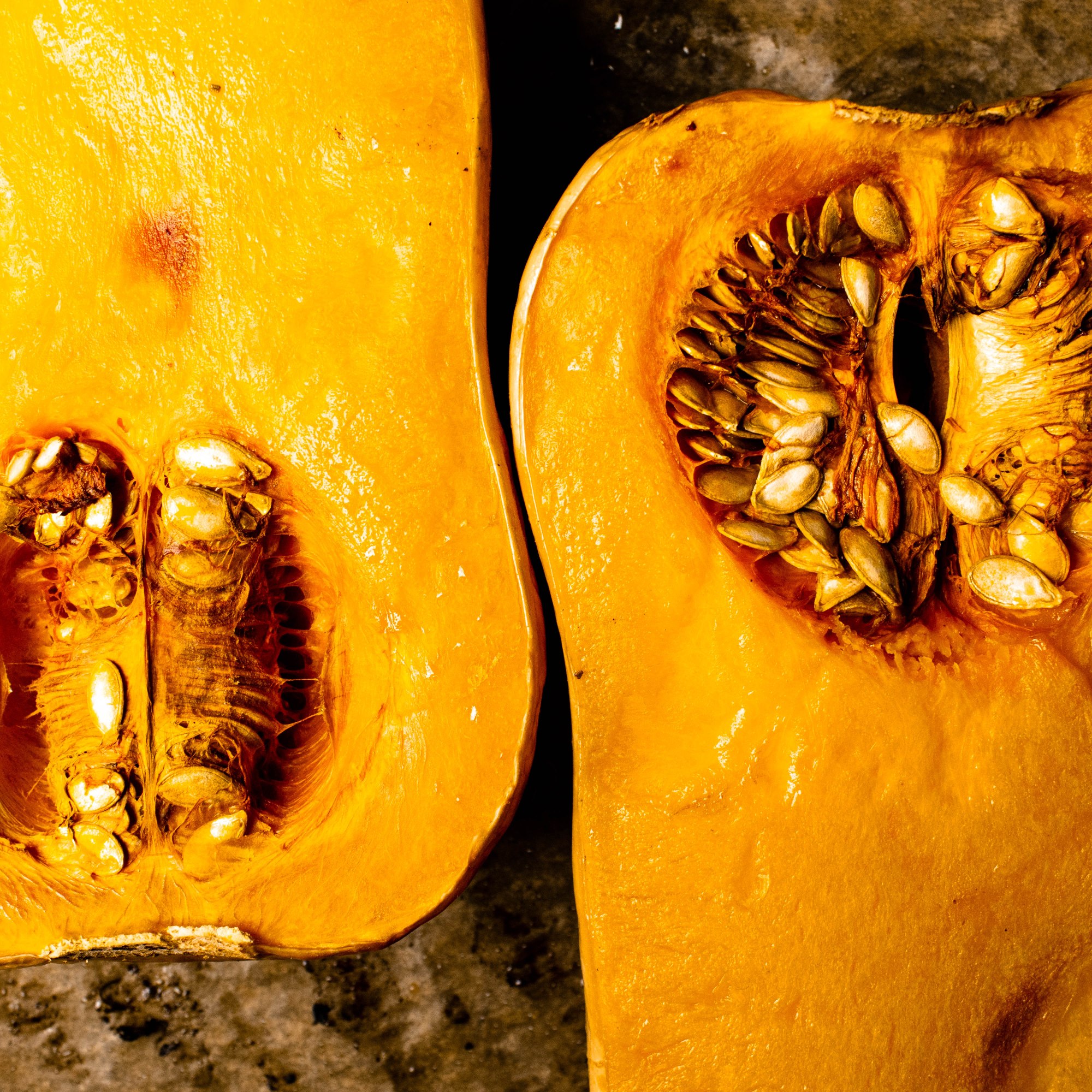 Dynię umyj i przekrój na pół. Skrop oliwą z oliwek, przypraw solą, pieprzem i wędzoną papryką, włóż do piekarnika nagrzanego do 160 stopni na około 40 – 45 min. Wystudź.