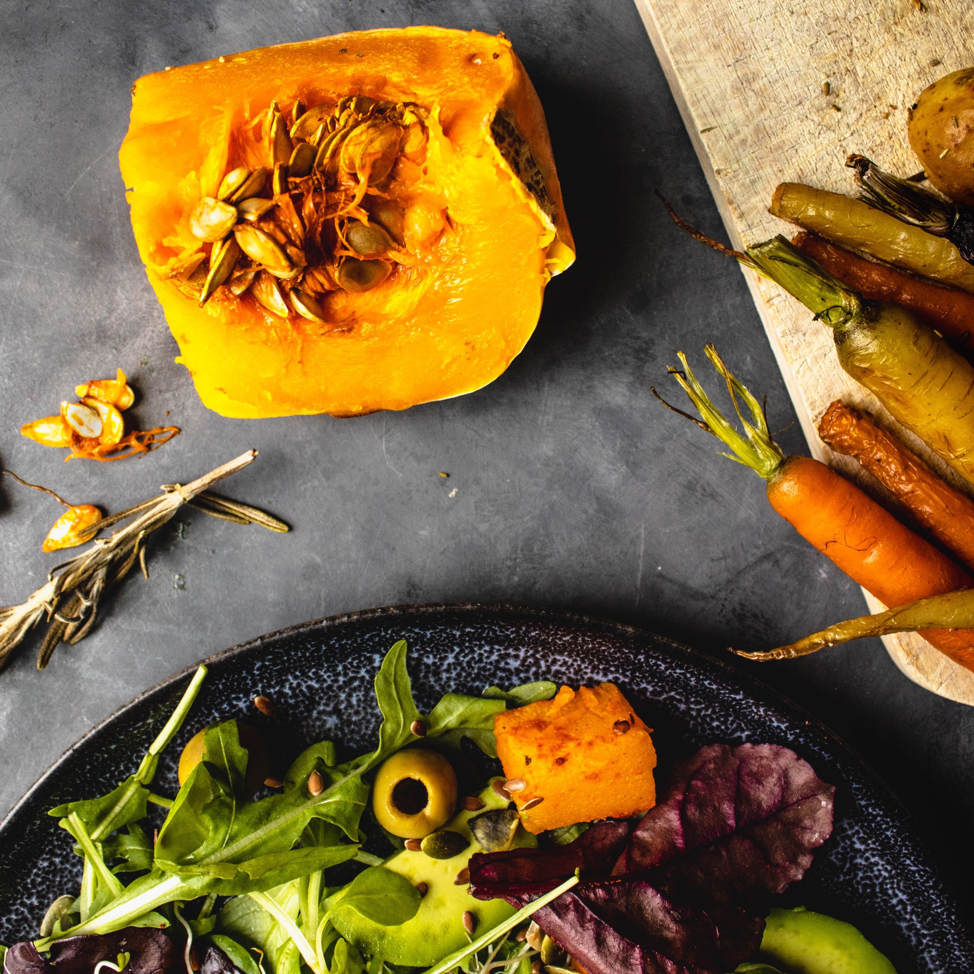 Jeśli nie przepadasz za dynią, możesz ją zastąpić w sałatce pieczonym batatem – jest równie smaczny!