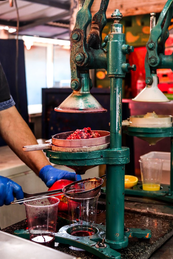 Krwistoczerwony, świeżo wyciskany na oczach spragnionych turystów sok to bez wątpienia jedna z najsmaczniejszych rzeczy jakiej można spróbować w Izraelu. Małe stragany na których można kupić świeżutki sok są bardzo popularne – najczęściej znajdują się na marketach, ale zdarza się też na nie natknąć spacerując wzdłuż ulicy. Taki kubeczek (tylko plastikowy… :)) świeżo wyciśniętego soku można już kupić za kilka szekli.